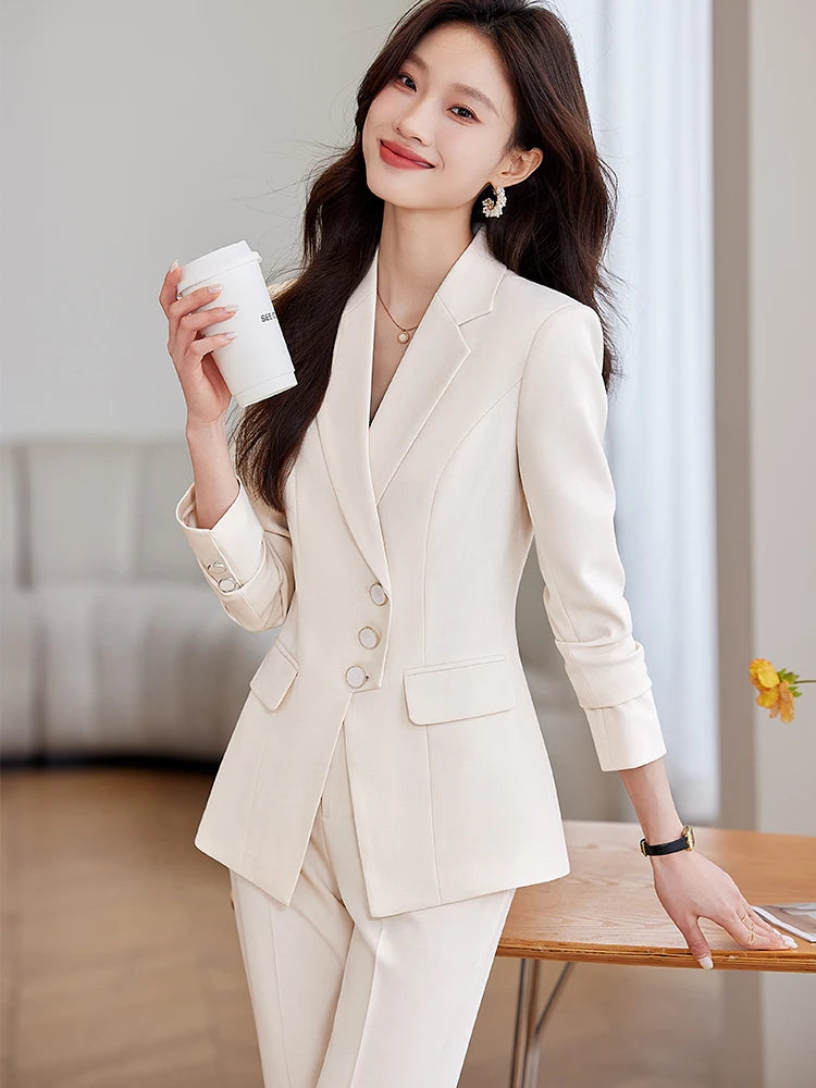 Women's Pant Suit Pink Blue Apricot Office Ladies Work 2 Piece Set Blazer