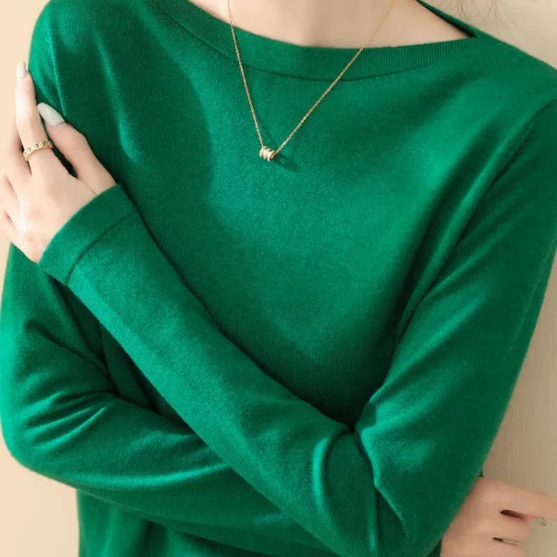 Spring Autumn Women's Clothing Solid Color Long Sleeve Round Neck Pullover Sweater Knitted Undershirts Casual All-match Tops