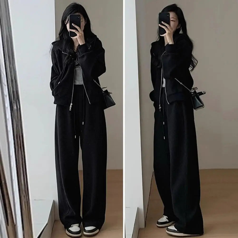 Women's new trendy slim fit high-end hoodie wide leg pants two-piece set, street style casual, comfortable fabric
