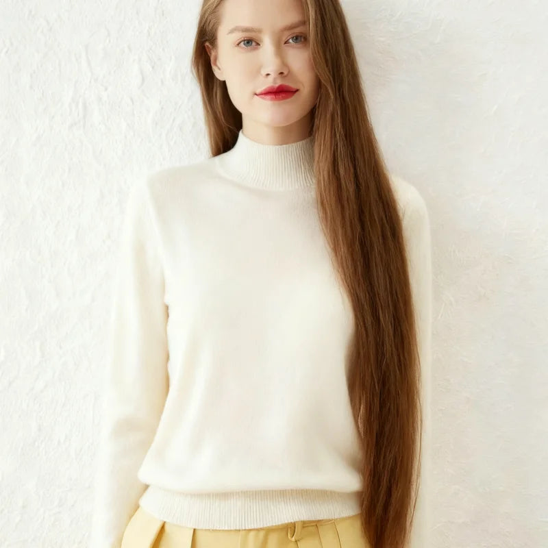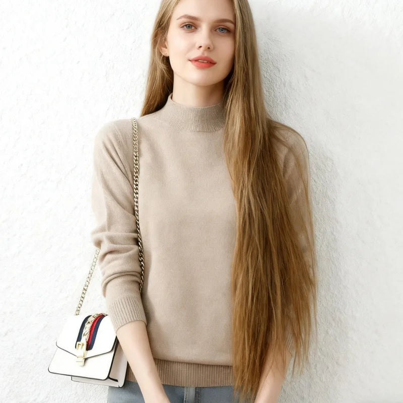 2025 Autumn Winter Women Sweaters Fashion Casual Pullover Long Sleeve Knitted Mock Neck Jumpers Fall Elegant Knitwear Warm Top