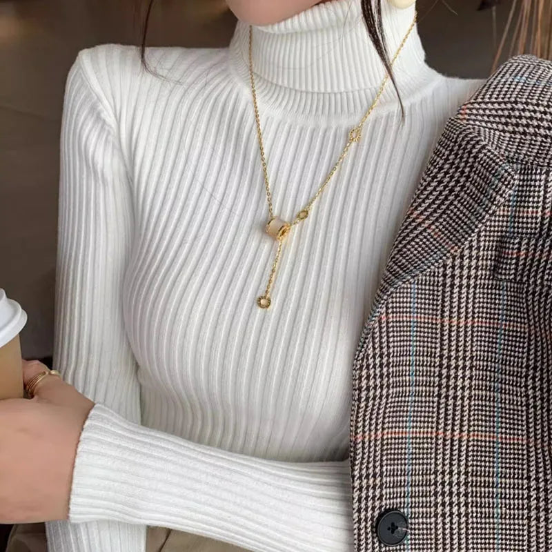 2025 New Turtleneck Knitted Pullovers Elegant Office White Sweater Casual Knitted Clothes Autumn Winter Long Sleeve Sweaters