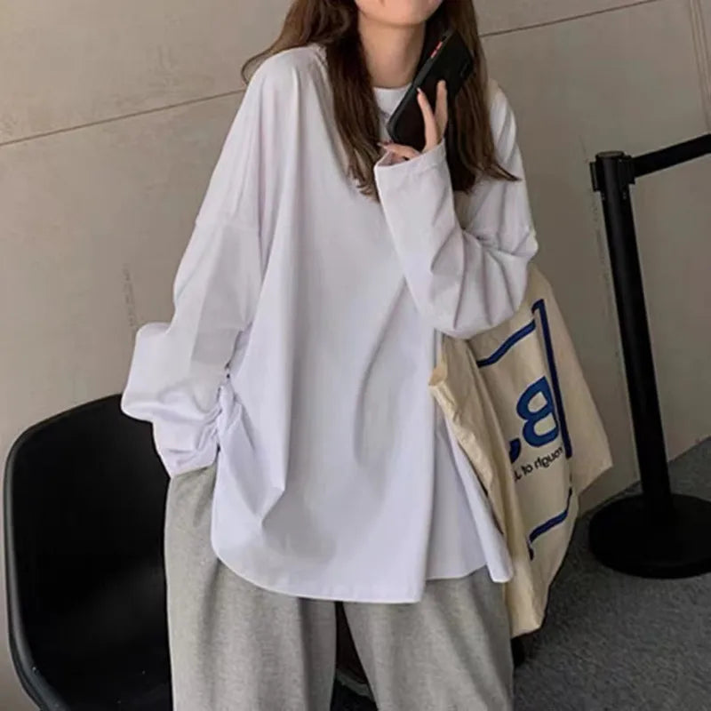 Spring Autumn Loose Long Sve Basic Sle Women's T-irt Faionable Casual round Ne Top Polyester Spandex Blend
