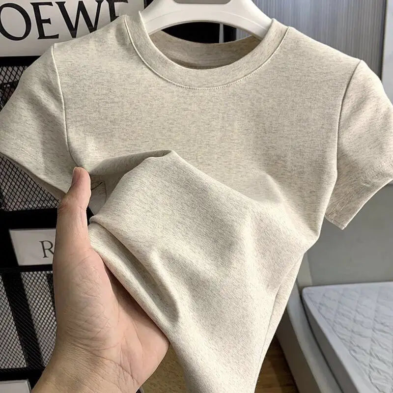 100% Pure Cotton Casual Short Sleeved T-shirt for Women's Summer Elastic Slim Fit Round Neck Bottom Shirt for Women's Fashion