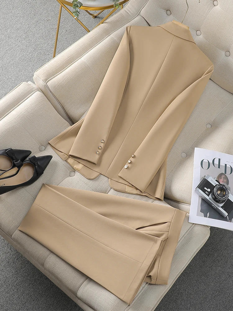 Fashion Khaki Black Apricot Women Pant Suit 2 Piece Set Office Ladies Female Business Work Wear Formal Blazer Jacket And Trouser