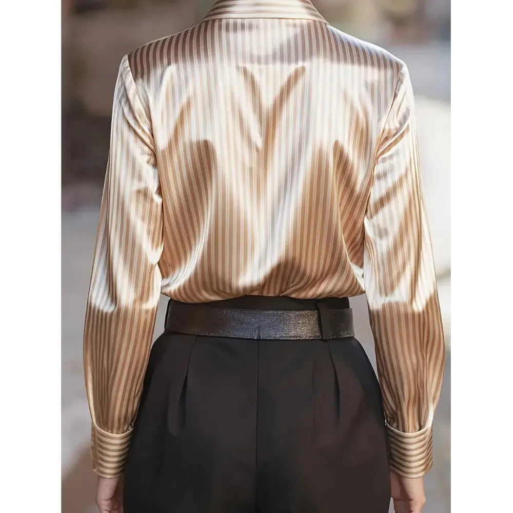 Autumn Long Sleeve Shirt Women's Fashion Striped Loose Single Breasted Cardigan Retro Casual Female Office Shirt 2025