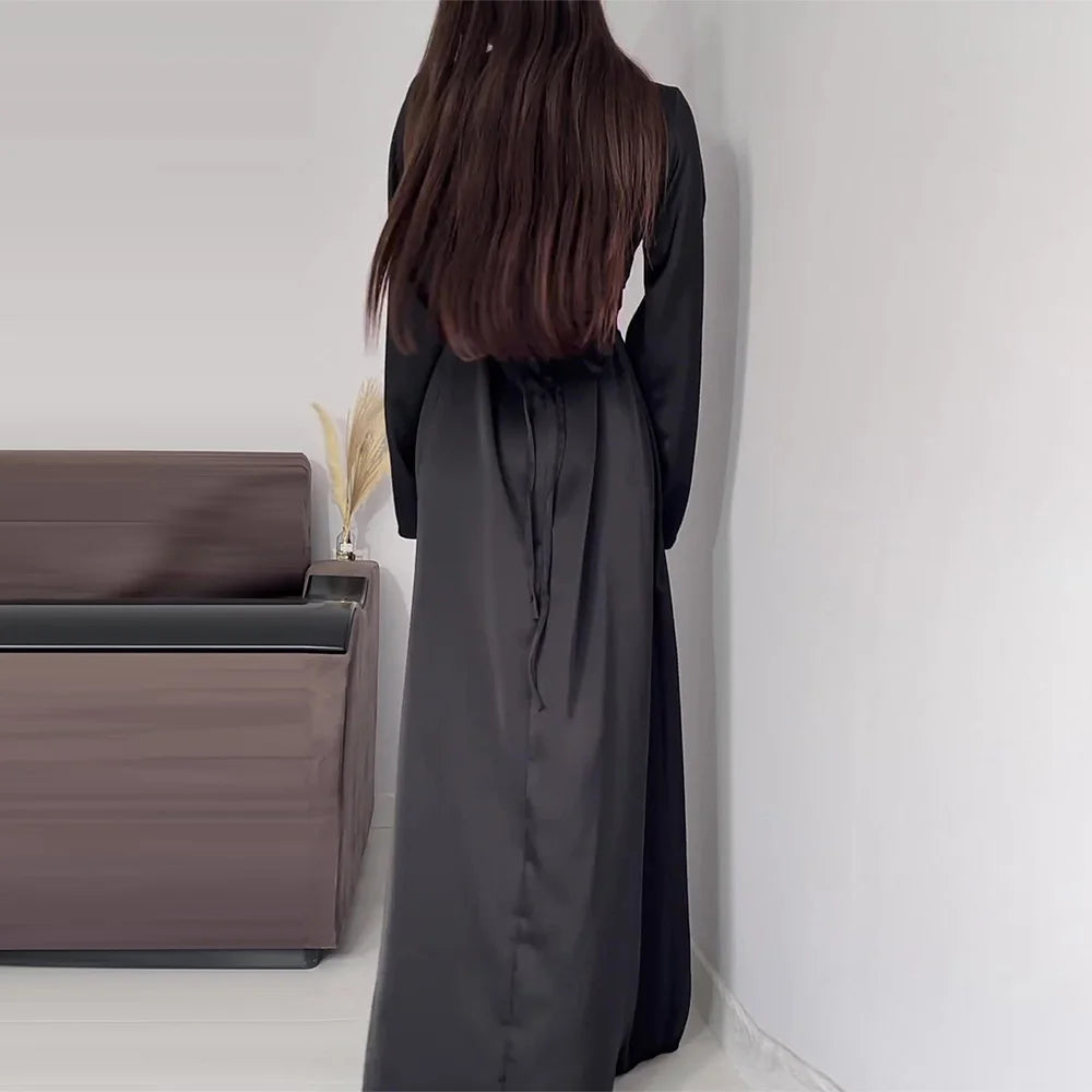 2025 Autumn Women Long-sleeved Diagonal Collar Slim-fitting Party Maxi Dresses Split Dresss