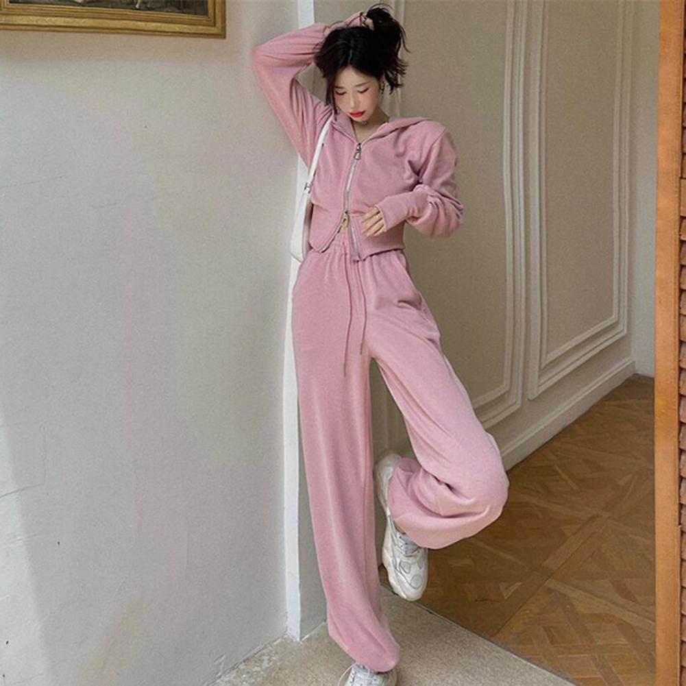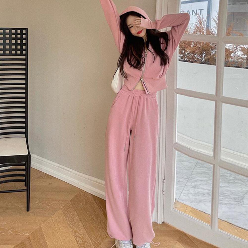 The tracksuit features double zippers, hooded, wide leg, loose pattern, deep crotch and elastic waist designs which will make you feel so comfortable in this suit.