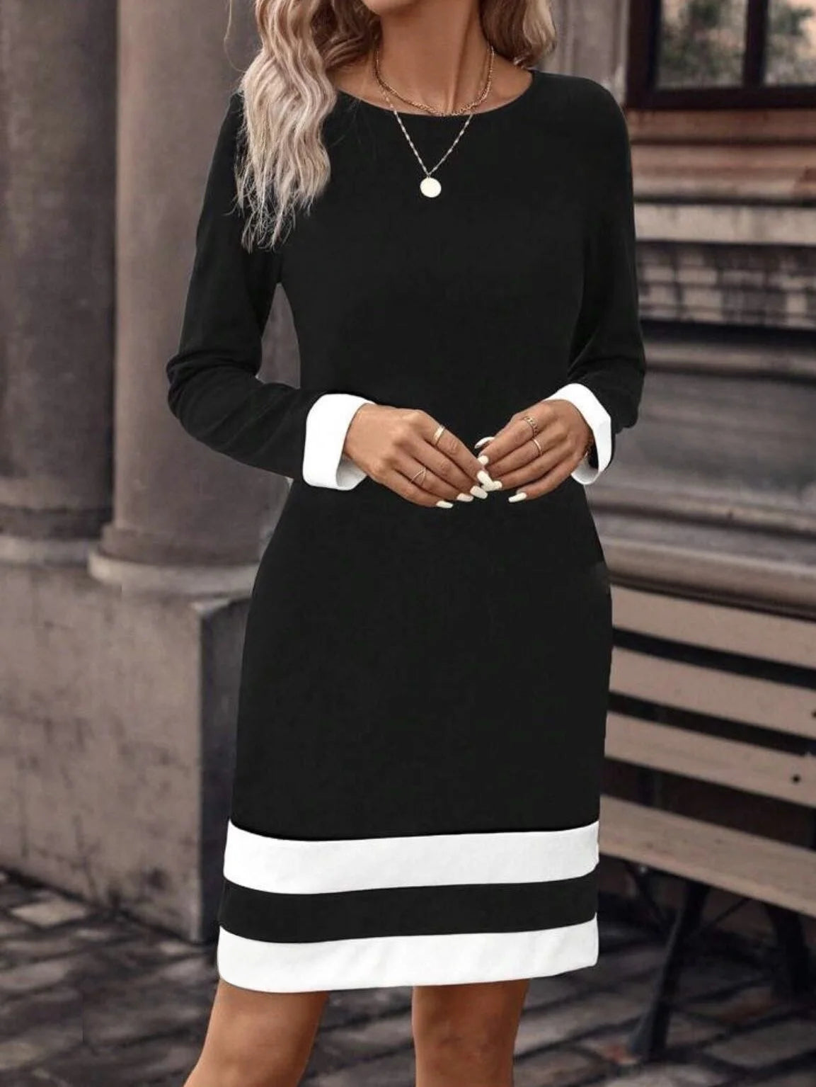New clashing polka collar knit bottomed waistline for autumn and winter new long-sleeved thin bottomed top and slim dress